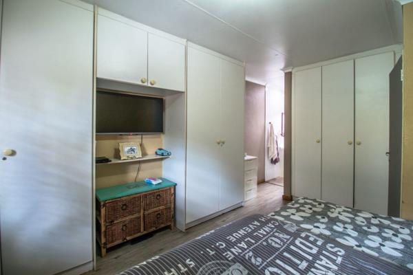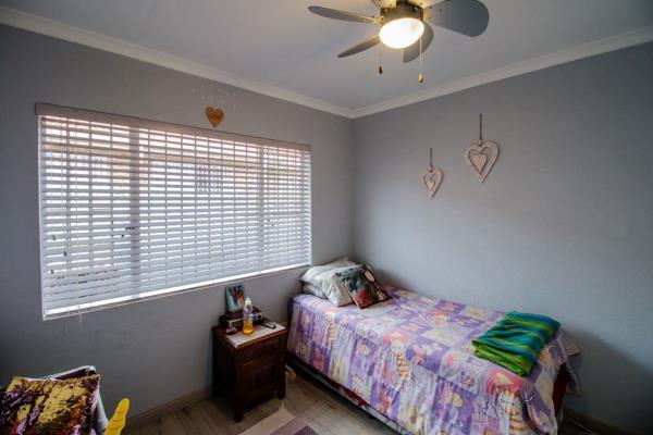 Secured with burglar bars, security doors and Intercom to enter the complex.