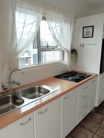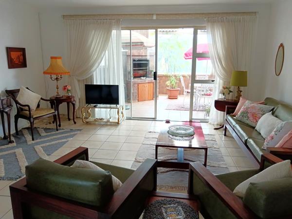 The open-plan lounge and dining room create a warm and inviting living area, with a sliding door leading out to a covered patio complete with a built-in braaiperfect for relaxed outdoor entertaining. The kitchen includes a practical combo scullery and opens onto a covered courtyard for added functionality. The unit also offers direct access to a single garage, providing convenience and security.