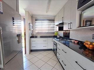 Discover this inviting 142 sqm residence nestled within a secure complex. The property immediately impresses with its attractive brick exterior, classic red tile roof, and meticulously maintained landscaping. Paved pathways lead to the entrance, creating a welcoming first impression.