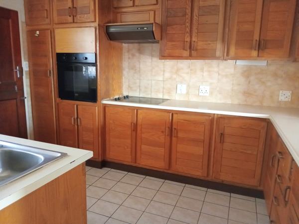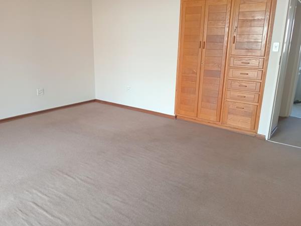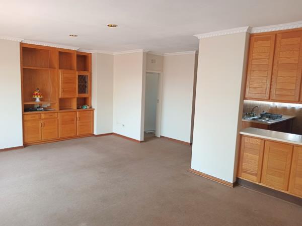 The home features two carpeted bedrooms, each fitted with built-in cupboards, and two neat bathrooms for added ease. The open-plan lounge and dining area provide a warm, welcoming space to relax or entertain, while the kitchen is equipped with a hob, eye-level oven, and a practical combo scullery with a double basin.