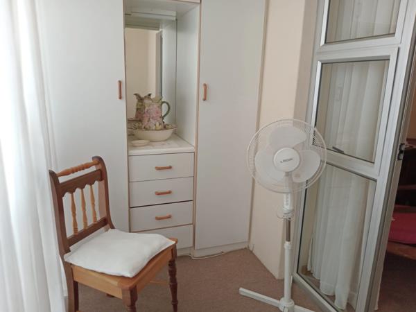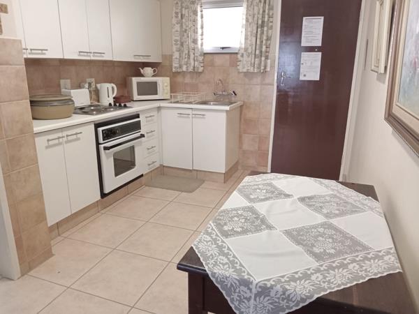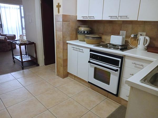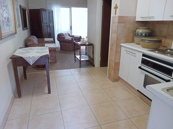 This neat 1-bedroom townhouse flat is situated in a safe and well-established retirement village, offering comfortable, low-maintenance living. The home features a carpeted lounge flowing into an open-plan, tiled kitchen fitted with a standard hob, undercounter oven, and a convenient combo scullery. The carpeted half-bedroom includes ample built-in cupboards, while the bathroom is neatly finished with a toilet, basin, and a shower-over-bath.