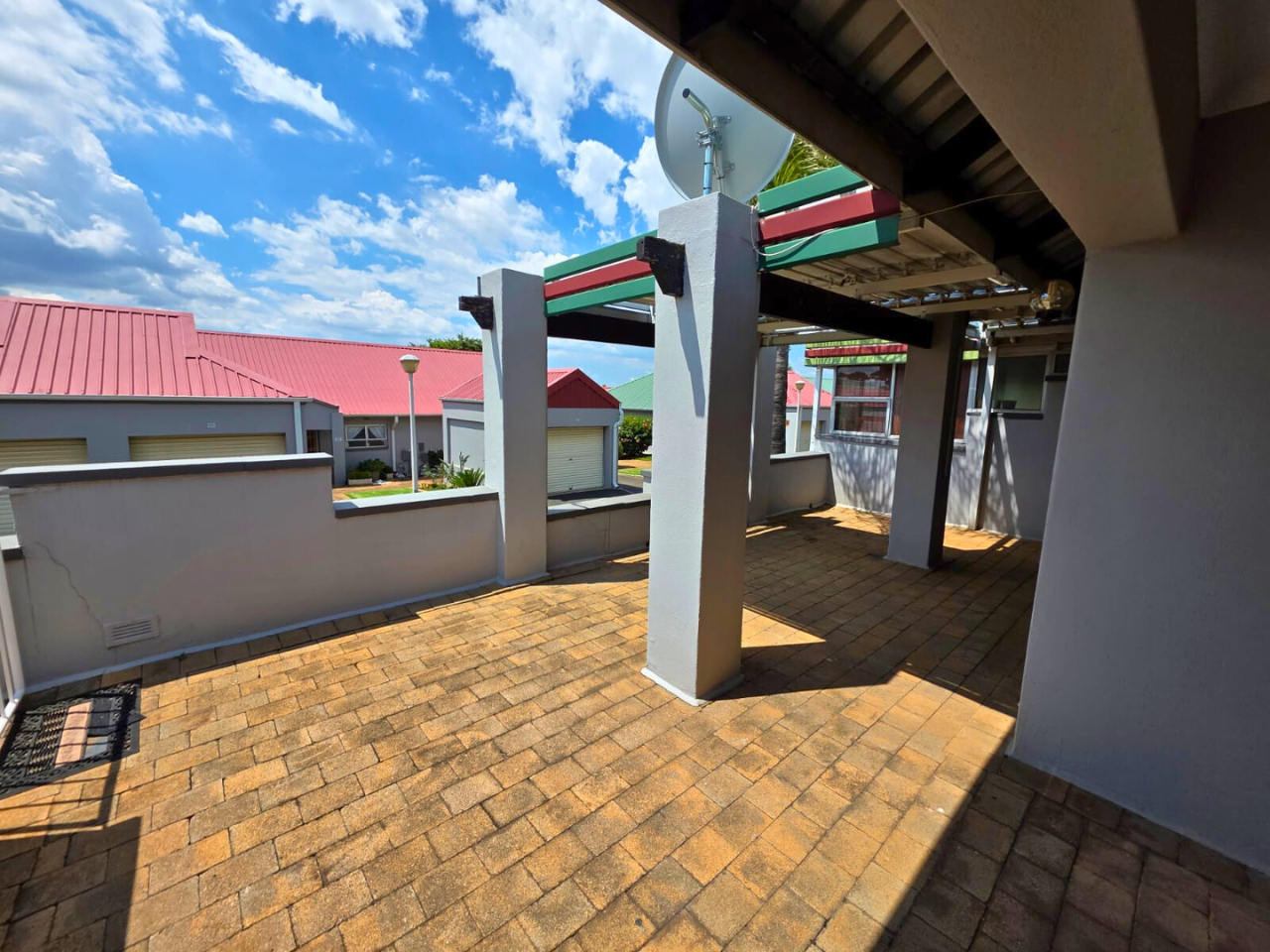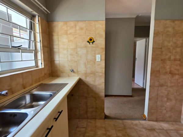 The home offers a spacious bedroom with built-in cupboards, a light-filled open-plan lounge and dining area and sliding doors leading to a covered patio perfect for relaxed outdoor moments. The well-designed kitchen includes a practical scullery and access to a covered courtyard. A single garage provides secure parking, while the large, well-appointed bathroom features both a bath and shower for everyday convenience.