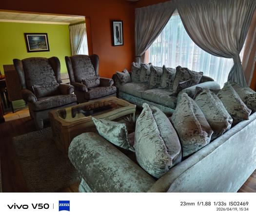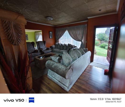 Outside, the property truly shines. The large, neat garden provides plenty of space for children and pets to enjoy. A spacious thatched lapa offers the perfect setting for entertaining guests or hosting family gatherings. Additional outdoor features include a storage room, outside toilet, and shower.