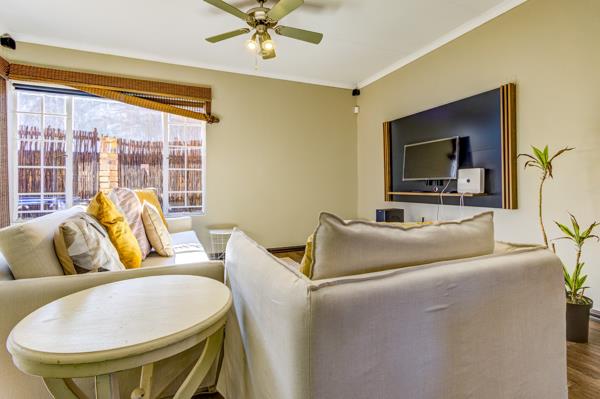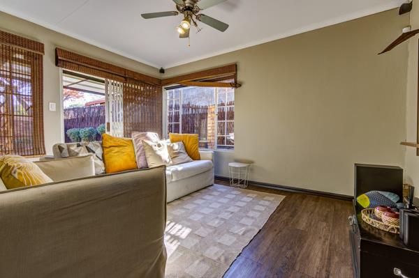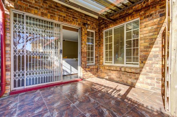 Small garden and tiled patio. 2 Garages with roll-up doors and direct entry into the house. 6 Solar panels, Inverter with 1 Lithium battery. Burglar bars and security doors. Enclosed area. Close to schools.