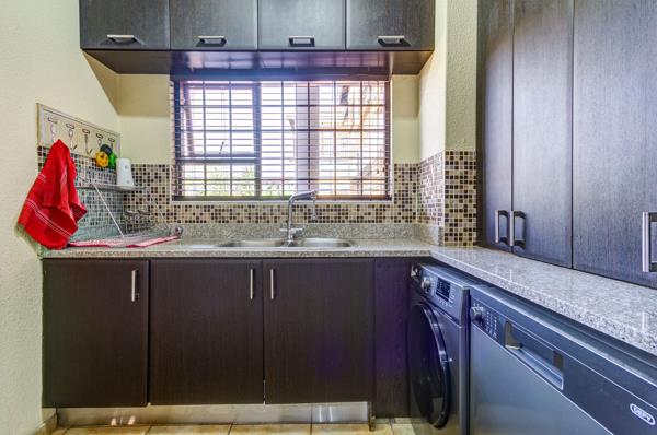 Prioritising safety, the property benefits from 24-hour estate security, an alarm system, electric fencing, burglar bars, and security gates. For enhanced sustainability, the home is equipped with a battery inverter and solar panels, alongside fibre connectivity. Outdoor living is a delight with a private garden, a built-in braai, and a patio and deck area perfect for entertaining. Pets are allowed, making this an ideal family haven.