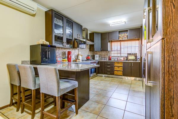 Nestled within a secure estate in Van Riebeeck Park, Kempton Park, this modern two-story family home offers exceptional living. Its attractive brick facade, paved driveway, and spacious double garage create a welcoming first impression. A covered entrance with pillars leads into an inviting entrance hall. The open-plan interior features a comfortable lounge and dining area with practical tiled flooring and air conditioning. Large windows and sliding doors ensure abundant natural light, complemented by security gates for peace of mind.