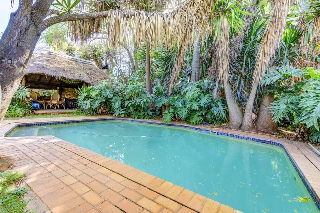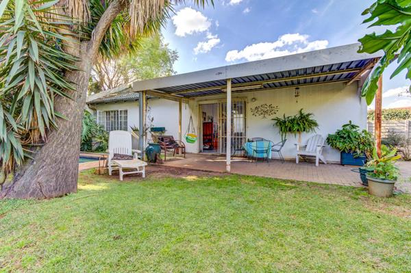 A large pool and lapa with a built-in braai situated in the luscious garden. A single garage and carport as well and 2 toolsheds for general use.