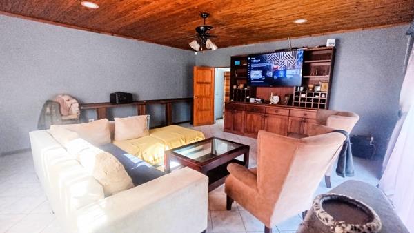 For those who love to entertain, this home features a spacious lapa with a charming thatch roof, complete with all the essentials for outdoor entertainment. Enhance your gatherings with a bar conveniently located next to the lapa, creating the perfect setting for unforgettable moments with family and friends.