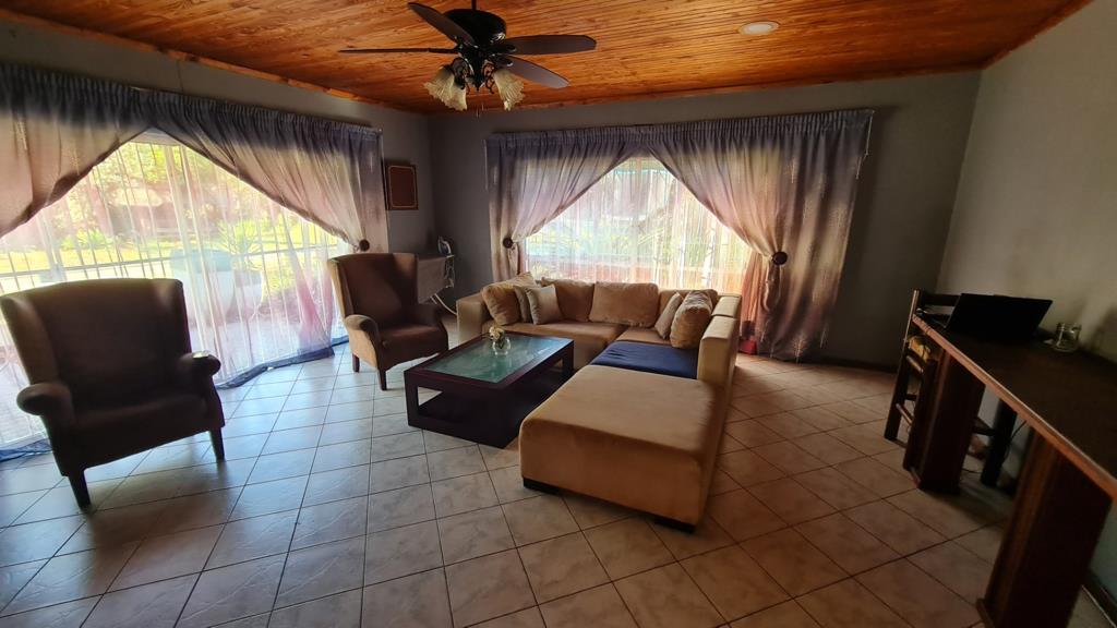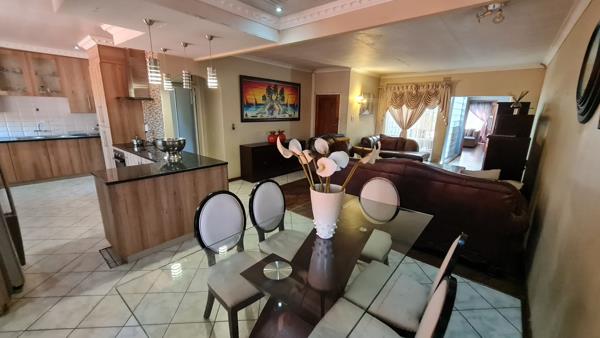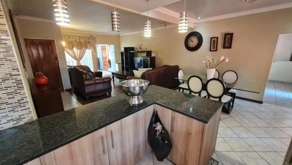 Discover the exceptional value of this well-priced family home, boasting ample space and convenience in a sought-after neighborhood. Situated on a desirable street close to all local amenities, this property features a spacious yard with a pool and a cozy Lapa equipped with a built-in braai, perfect for entertaining. Adjacent to the Lapa is a separate bar room, offering picturesque views of the leisure areas. The pool needs some TLC, adding a personal touch opportunity. Storage and security are ample with a double lock-up garage and additional safe undercover parking. Inside, the home unfolds into two large living areas, including a private retreat perfect for quiet relaxation. The heart of this home is the open-plan kitchen with superior finishes and granite countertops, flowing into a generously sized dining room. It includes three large bedrooms, each with built-in cupboards, and the master suite features a private bathroom. Although some areas of the home may require a little TLC, the potential and pricing make this an unbeatable investment. Act quickly to secure a property of this caliber at such an attractive price.