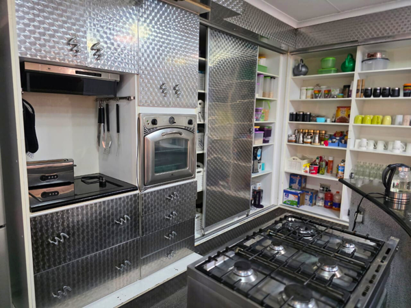 From the elegant Meranti wood finishes to the showstopping sleeper wood swivel door, every detail speaks of quality and distinction. The home boasts 4 spacious bedrooms with direct access to a secure, covered passage overlooking a sparkling pool, 3 beautifully appointed bathrooms (including a main en-suite with double shower, soaker tub, and walk-through closet), and expansive living spaces designed for both entertaining and relaxation. The gourmet open-plan kitchen features stainless steel cabinetry, a gas stove, Whitehouse eye-level oven, and separate scullery/laundry.