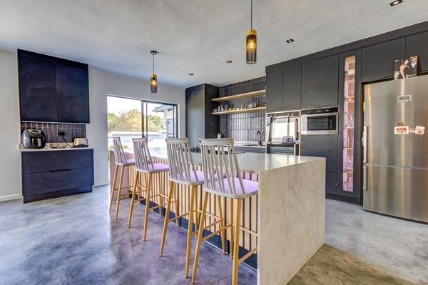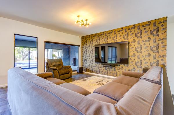 Enjoy the outdoors in style with a covered patio, built-in braai, and boma area overlooking a sparkling blue pool perfect for entertaining family and friends. The pet-friendly garden is easy to maintain, featuring a jungle gym for kids and ample space to play.