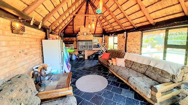 The standout features include: a versatile bedroom that can serve as a guest room, teen space or home office, comfortable open-plan living areas that enhance the home''s welcoming atmosphere, 2 modern bathrooms for convenience, a spacious kitchen with granite counter-tops and a gas hob - perfect for culinary enthusiasts, and a neat garden featuring a refreshing swimming pool and a large thatched lapa with a built-in braai, ideal for entertaining.