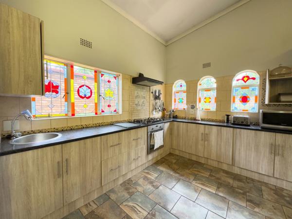 There are 3 garages, 2 carport, a solar-inverter room, gas geyser, an outside room, a Wendy house for storageworkshop, and a rainwater tank for easy living.