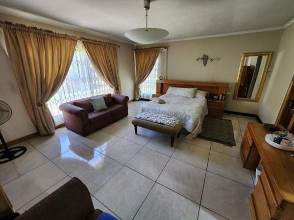 This property offers large,open plan tiled lounge, open plan opens onto garden,tile dining room,open plan tiled large family room, 5 bedroom:balcony, large main, TV connection,Walk-In Cupboards,aluminum windows,3 bathroom,double basin, modern, shower,tiled to ceiling,breakfast counter,granite tops,open plan,tiled floor wooden, stove:four plate, Hobstandard,under counter,scullery:small,tiled,pantry:large,shelving,Walk-In,Interior Special Features:Aircon, Water Feature.