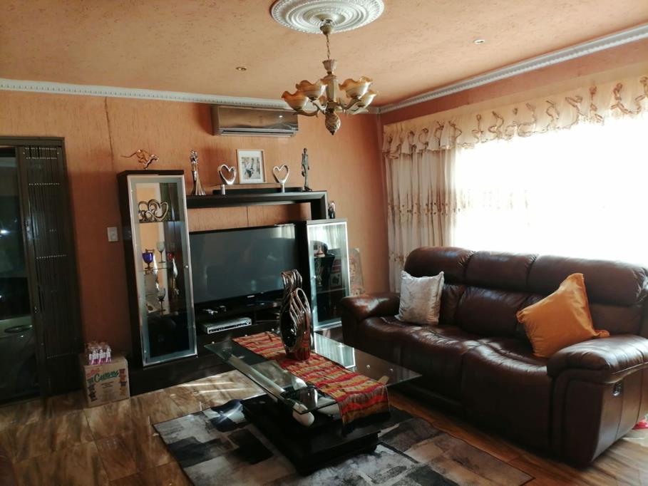 Two-Bedroom Home with Double Garage & Stylish Finishes. This two-bedroom home offers a perfect blend of comfort and functionality. The kitchen, dining area, and lounge create a welcoming space for family living and entertaining, with the lounge fitted with air conditioning for year-round comfort. Both bedrooms feature built-in cupboards, with the main bedroom boasting an ensuite bathroom, while the second bathroom includes a shower and toilet. An additional outside toilet adds convenience for guests. The property also provides secure parking with a double garage and an aluminum carport. Stylish aluminum windows, doors, and sliding doors enhance natural light and durability, while tiled finishes inside and outside the home add a sleek touch. The property is enclosed with boundary walls for privacy and security, and the classic roof tile completes the homes modern appeal.