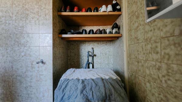 The bathroom includes shelves, a washing machine connection, and a bath with a shower attachment for added convenience. The unit comes with one designated parking space, and levies cover building insurance, maintenance, and refuse removal. A pre-paid electricity meter is installed for cost-effective energy management.