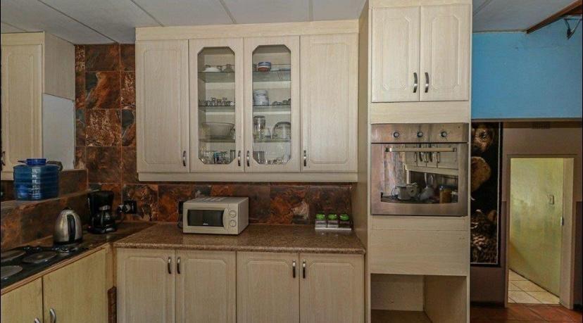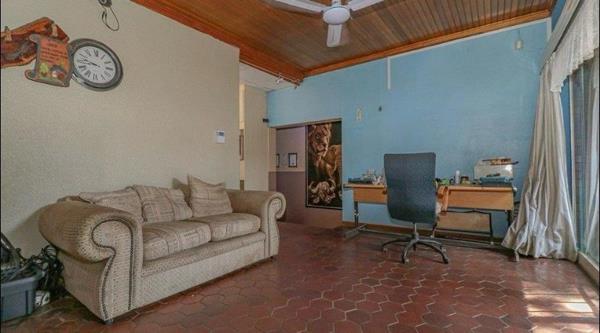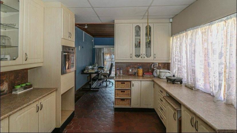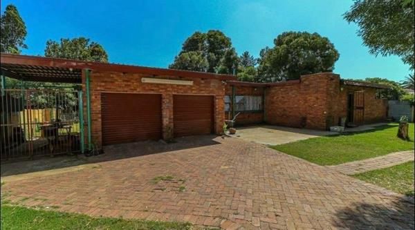 3-bedroom home for sale featuring built-in cupboards, 2 bathrooms (one en suite), a kitchen, lounge, dining room, pool, double garage, double carport, and a spacious yard. With a bit of TLC, this golden oldie can become your dream home!