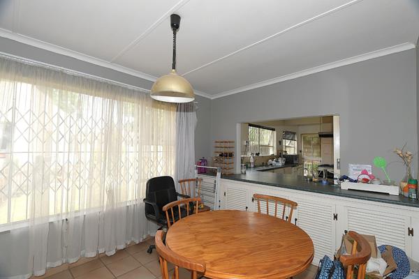 The kitchen is neatly designed with ample cupboard space and a serving hatch that connects to the dining room, creating an easy flow for family meals or entertaining. A welcoming entrance hall leads into a spacious lounge that opens onto a lovely patio, perfect for relaxing or enjoying the outdoors.