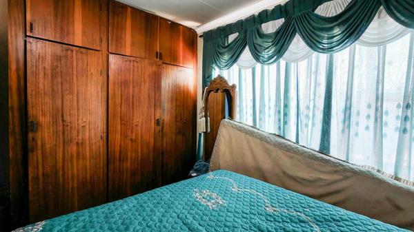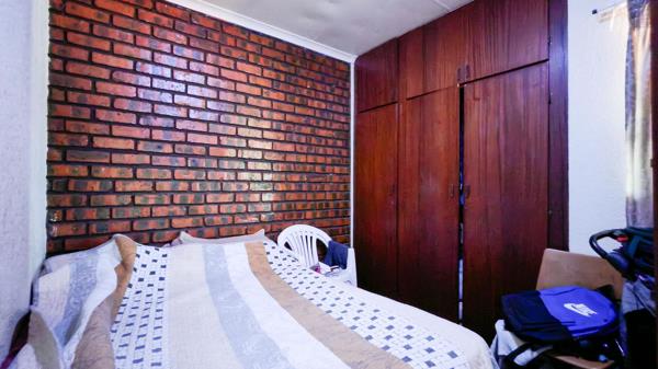 Inside, the open-plan lounge and kitchen create a welcoming space. Two moderate sized bedrooms come with built-in cupboards, and the bathroom is equipped with a bath, toilet, and basin.