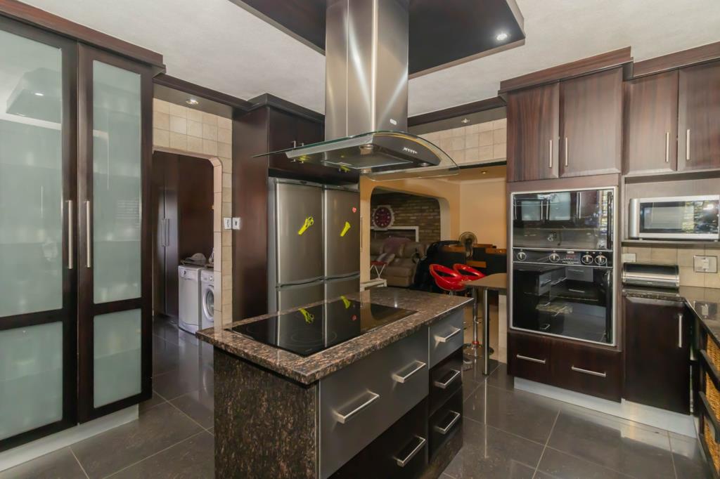 A private entertainment lounge with a built-in bar offers an intimate setting, complemented by sweeping views of the surrounding landscape. The state-of-the-art gourmet kitchen is a culinary enthusiasts dream, fitted with high-end appliances, a central island with an integrated stove, a double eye-level oven, and a walk-in laundry. The kitchen flows effortlessly into the dining area and a spacious TV room, all enhanced with underfloor heating.
