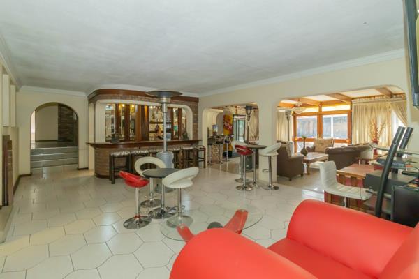 Further down, the home reveals a spacious entertainment zone, including a large bar and an open-plan lounge area that flows into another living room and dining space, along with a convenient guest bathroom. Adjacent to the entertainment area is a dedicated snooker room, while large windows and sliding doors invite an abundance of natural light throughout the home.