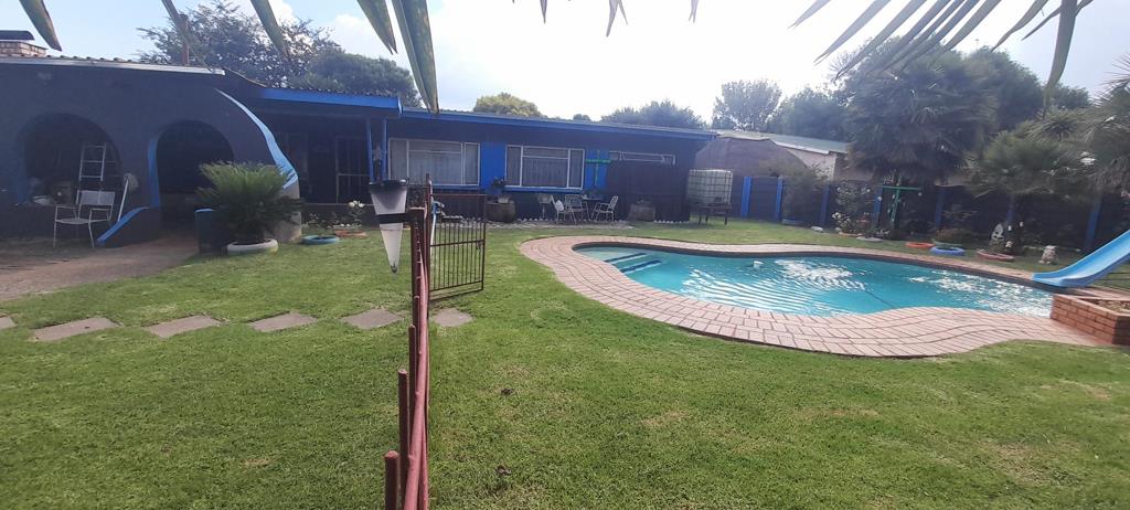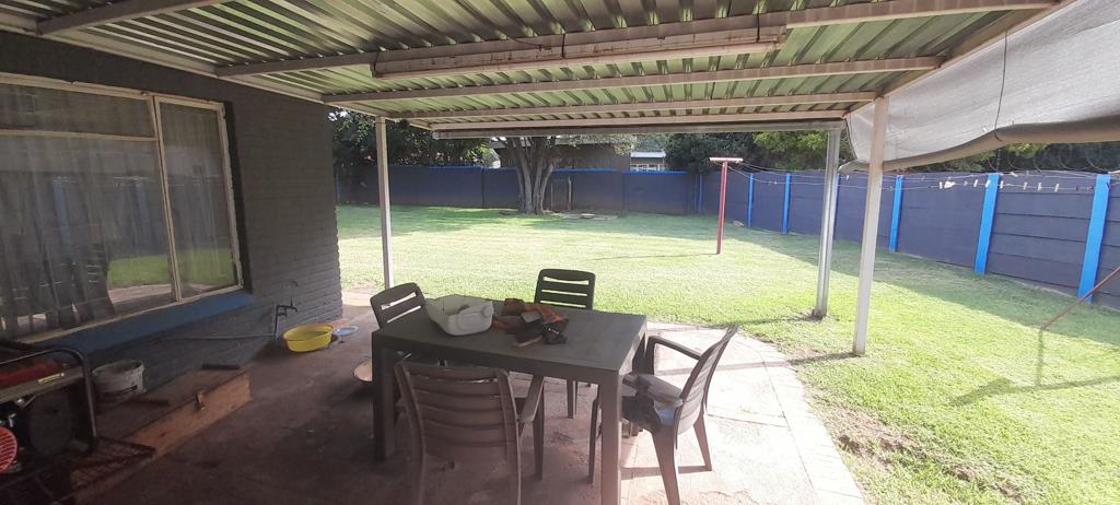Lots of potential.!!!!! Sparkling swimming pool in a well maintained garden. Entertainment room with built in bar and built in braai leads out unto a covered patio. Spacious family room, separate dining room and kitchen. Modern kitchen has ample built in cupboards, wooden cupboards and connection for a washing machine. 4 Bedrooms carpeted. 3 bedrooms with built in cupboards. The 4th bedroom can be used as a study. 2 bathrooms. Main bedroom with loads of cupboards and a full en suite bathroom. Extra covered entertainment area at the back yard.