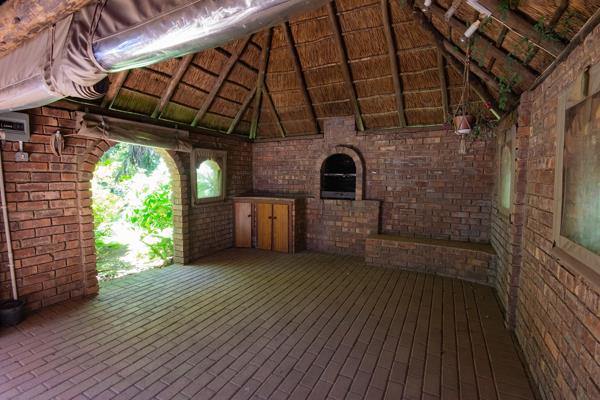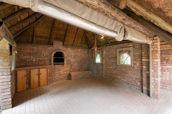 Entertain guests in the enclosed braai area, featuring roll up canvas windows and entrances for year-round enjoyment.