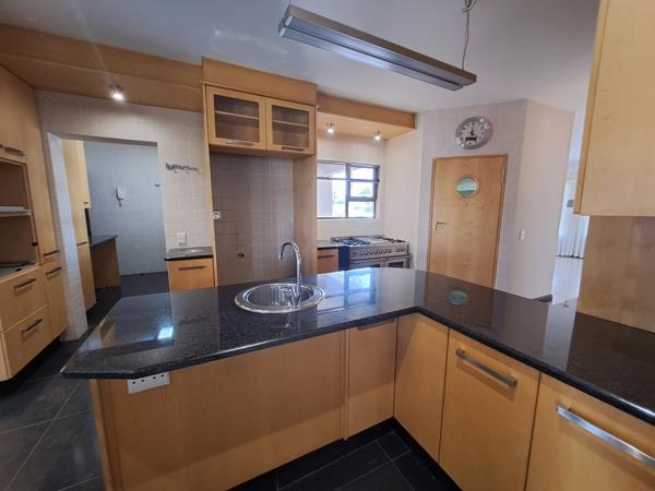 Entertainment Haven: Covered patio with built-in braai overlooking the sparkling swimming pool and landscaped garden.