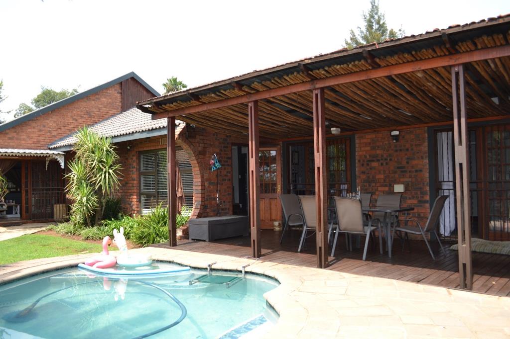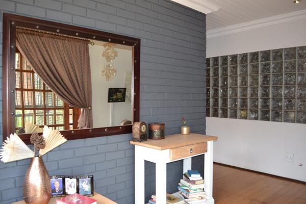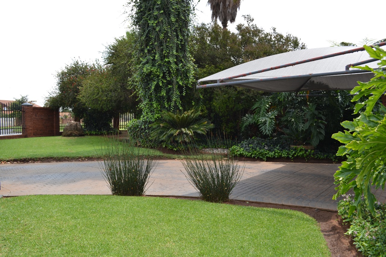 Stepping outside, the home continues to impress with its expansive outdoor living spaces. A spacious undercover patio overlooks the beautifully landscaped front and backyard, providing a serene setting to enjoy a morning coffee or evening sunset. The covered entertainment area is an entertainers dream, complete with a built-in braai, perfect for hosting gatherings with family and friends. The backyard is a private oasis, featuring a sparkling swimming pool, lush gardens, and a well-maintained borehole and sprinkler system to keep everything green year-round.