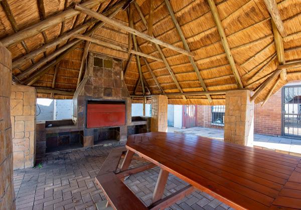 The elegant thatched lapa invites relaxed weekends, long lunches, and twilight gatherings