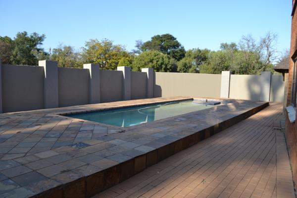 A sparkling pool glistens at the heart of a beautifully landscaped setting
