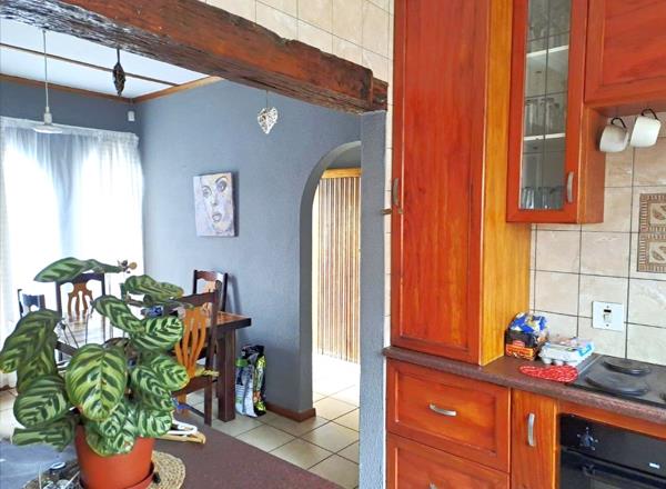 Open-plan dining area & neat, well-laid-out kitchen with ample storage