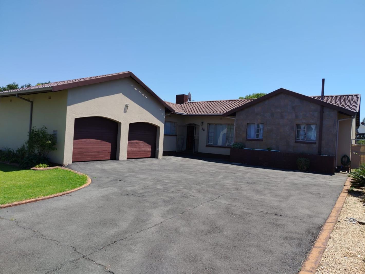 Discover this charming single-story home, spanning 220 sqm on a generous 1041 sqm erf, located in the suburban area of Ferryvale, Nigel. The property presents a welcoming facade with a double garage and a spacious paved driveway, offering ample parking. The exterior features a blend of beige stucco and stone cladding under a well-maintained tiled roof, complemented by a neat lawn and a gravel garden area. Inside, a comfortable lounge, dedicated dining room, and a family TV room provide versatile spaces for relaxation and entertainment. A functional kitchen completes the living areas.