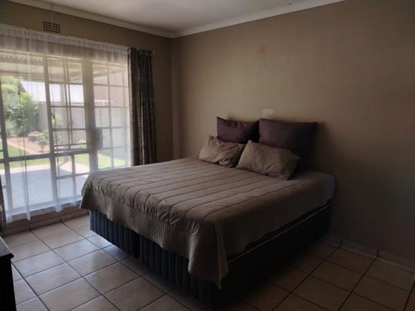 Step outside to enjoy the private garden, complete with a patio and deck, perfect for outdoor living. A built-in braai enhances the al fresco experience. Practical amenities include a dedicated laundry area and additional storage. Pets are welcome, making this an ideal family home.