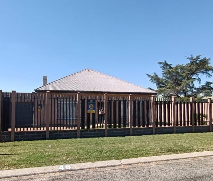 palisaded with a sliding security gate giving access to the property on a driveway.