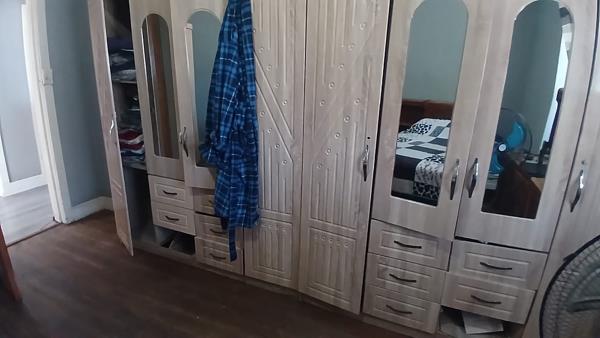cupboards. The bathroom is neatly tiled and comes with bath, basin and toilet. The whole house have pressed ceilings and all
