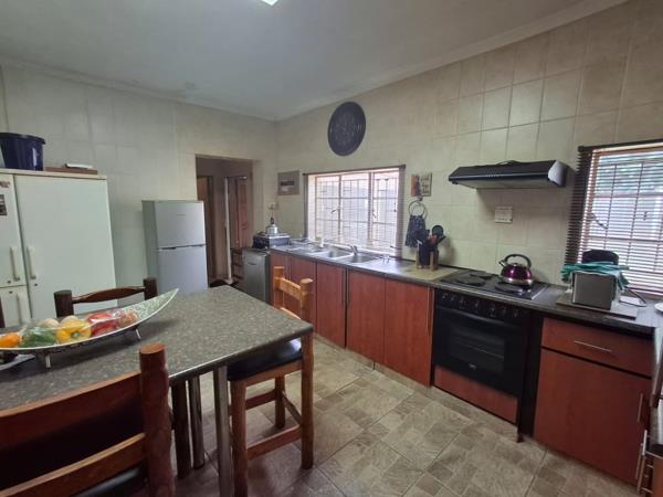 The property also offers a two-bedroom flatlet, tiled throughout. You enter through sliding doors into the open-plan living, dining, and kitchen area, secured by a safety gate. The flatlet includes a full bathroom with a washing machine connection.