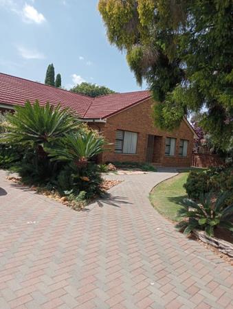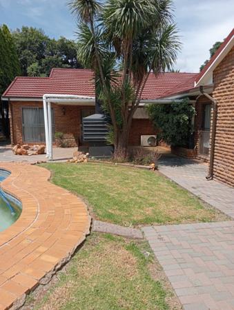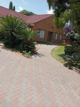 Magnificent and luxurious home. You are in for a treat when viewing this immaculate family home with excellent quality finishes throughout. Large and beautiful kitchen with ample cupboard space, 3 spacious bedrooms with built in cupboards and carpets, 2 full modern bathrooms, lounge, dining room, entrance hall and lovely entertainment area with built in braai and bar overlooking a large sparkling pool. Also offers double garage, carports. Property situated in a picturesque garden with large trees, lots of paving, very neatly maintained.
