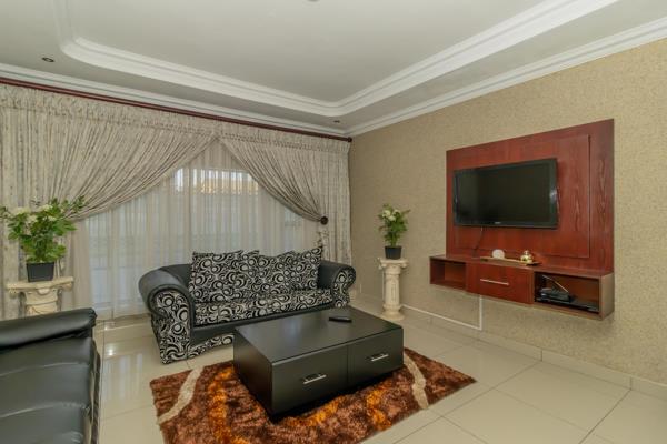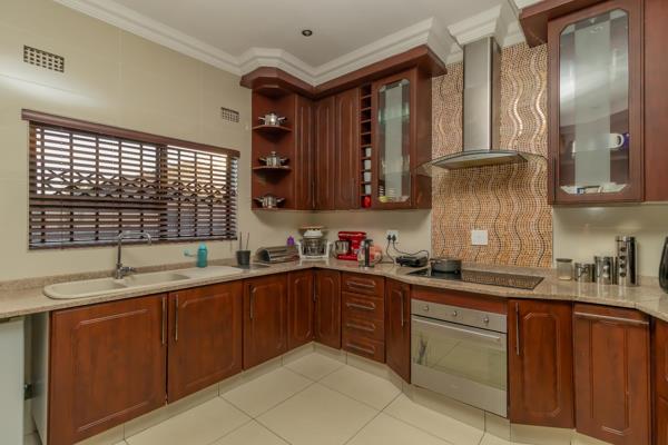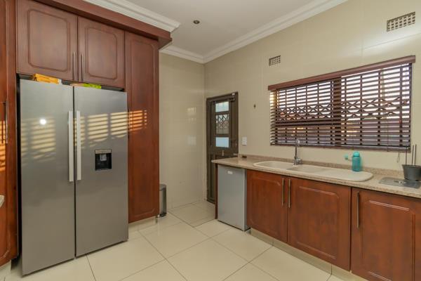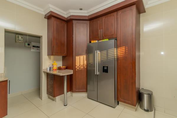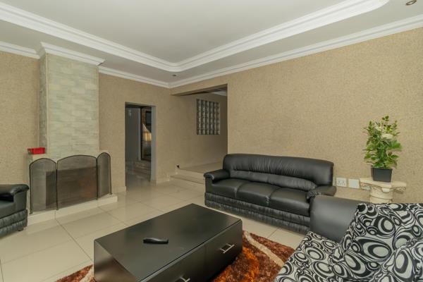 As you traverse through this delightful home, you''ll be greeted by soaring ceilings and tiled floors extending gracefully from the passageway into the expansive living room, TV room, and study. The TV room boasts a fireplace, and the kitchen is adorned with lovely granite countertops, an under-counter oven with a hob, and a harmonious flow to one of the living areas featuring gamazine walling.