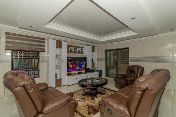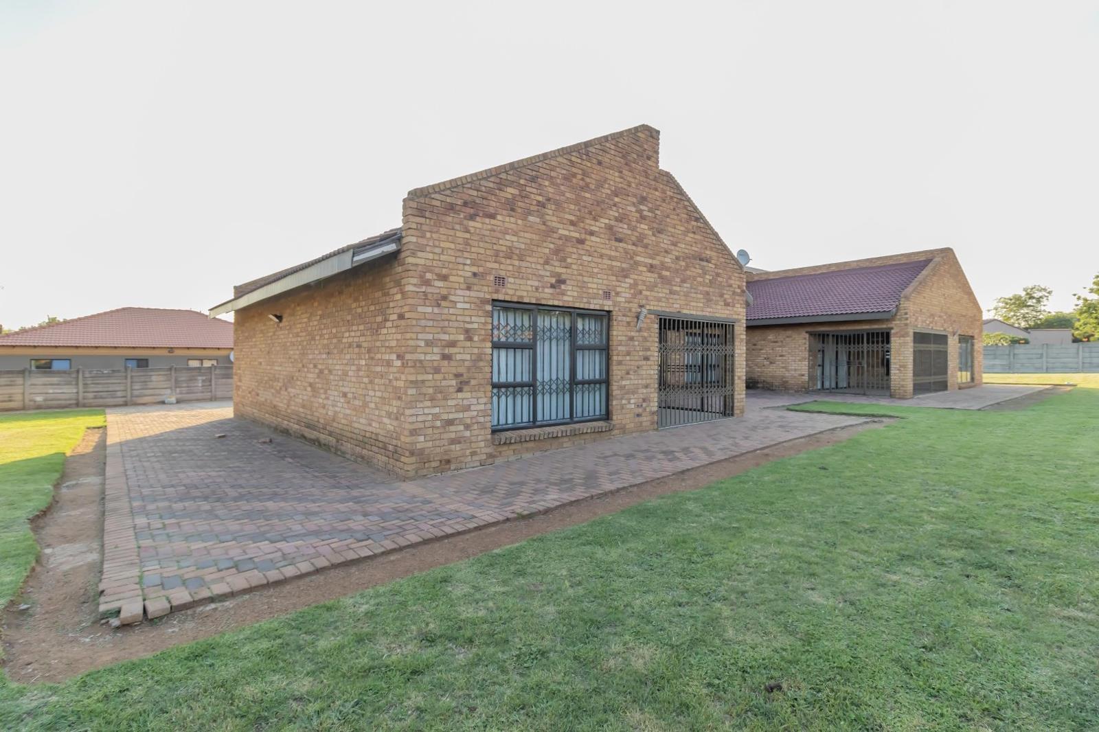 This charming abode comprises five spacious bedrooms, all equipped with contemporary built-in cupboards. The master bedroom, fully tiled and featuring a walk-in closet, comes complete with an en-suite bathroom boasting a bath, double basin, toilet, and shower. Adding to the allure is the fact that the main bedroom has its own access to the garden through a sliding door.