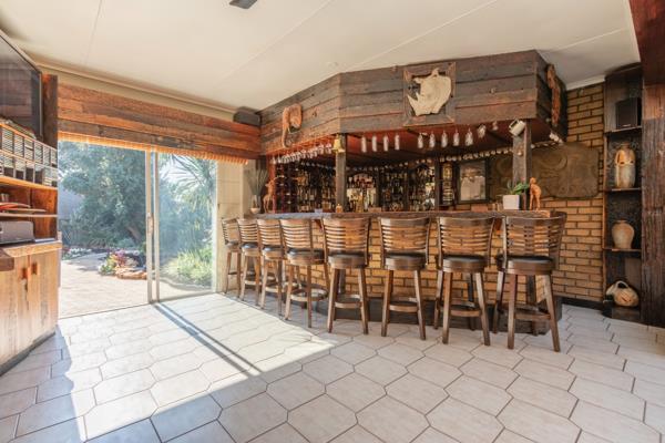 Expansive Bar Area featuring a built-in bar with stunning sleeper wood finishes, ideal for entertaining guests.