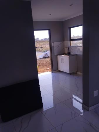 It features a modern kitchen, a spacious lounge with a sliding door leading to the outside, 2 bedrooms, and a well-appointed bathroom with a bathtub, basin, and toilet. The yard provides ample space for future extensions, giving you the opportunity to expand as your needs grow.