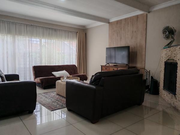 The property comprises four well-proportioned bedrooms, providing ample accommodation for residents. Complementing these are two bathrooms, one of which is an en-suite, offering convenience and privacy. The residence benefits from robust security provisions, including its location within a security complex and estate, further augmented by burglar bars and a security gate, ensuring peace of mind. Practical amenities include four dedicated garages and an additional four parking spaces, catering to extensive vehicle requirements.