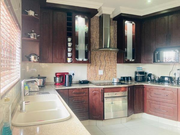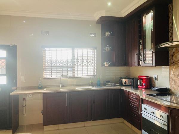 A large tiled entrance hall flows into a spacious open plan 2 lounges and dining area. The dining room leading into a beautiful designed kitchen featuring solid oak built in cupboards, granite counter tops. The property features 5 well sized bedrooms with BIC and a walk-in closet and 4 modern bathrooms, lifestyle and of which 2 are en-suite. The property feature 4 secured garages along with a dedicated study, providing excellent flexibility for work, hobbies or extra storage. The garage has ample cupboards for storage as well. This home combines convenience, lifestyle and practicality in one impressive package.