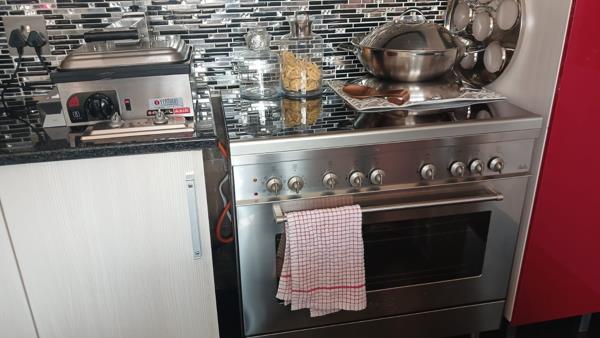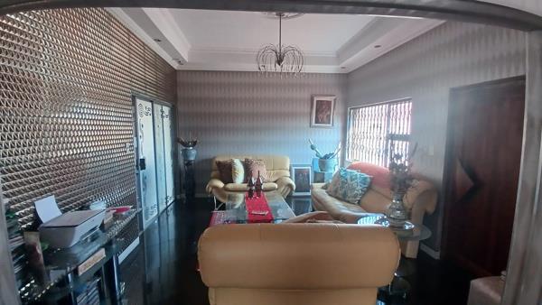 Perfect for the larger family, this well-located home offers comfort, space, and convenience. You enter through a welcoming small porch into a spacious open-plan living and dining area with sliding doors leading out to the swimming pool. The modern kitchen is fitted with ample built-in cupboards and a gas hob.