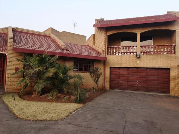 Large and ultimately exquisite. This impeccable double storey home is ideally situated in a well sought after area and features 3 bedrooms with built in cupboards all with aircons, 2 balconies, 2 bathrooms en-suite, large living-, dining- and TV room, fitted kitchen with scullery and separate laundry. Also has a jacuzzi, storeroom, lapa, fireplace, bar and braai area. Double garage with built-in cupboards for storage, plus additional storeroom. This home is a move in and stay, a definite must to view.