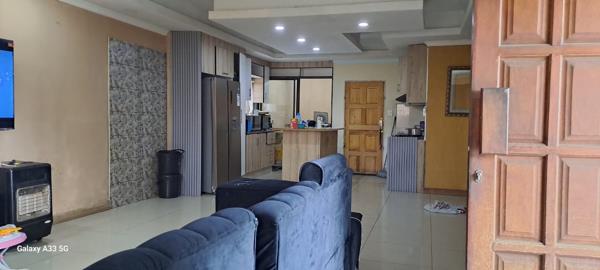 This exquisite property boasts three spacious bedrooms MES fitted with built-in cupboards, great quality kitchen with scullery and lots of cabinets and open plan living room that allows you to be part of conversation and able to monitor your children whilst you''re preparing food. Double garage to securely park your automobiles. Outside upstairs full functional studio with full bathroom and kitchenette for extra income.