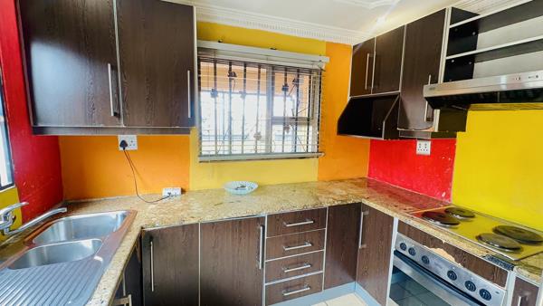 The kitchen is well-equipped with ample cupboard space, an electric stove, extractor fan, double sink, and space for a fridgeperfect for everyday convenience.