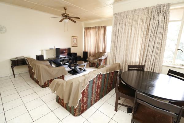 This neat and sunny 1st floor flatlet features Two bedrooms with built-in cupboards, a neatly tiled bathroom, a fitted kitchen, an open plan lounge and dining room, and a balcony.
