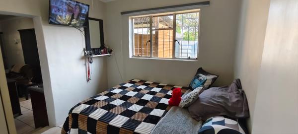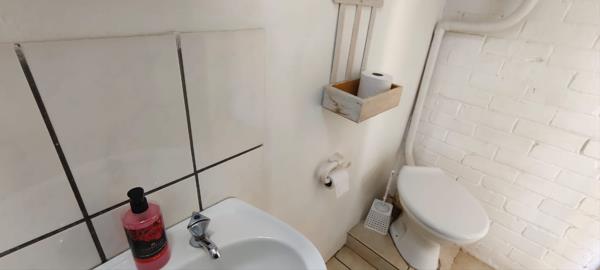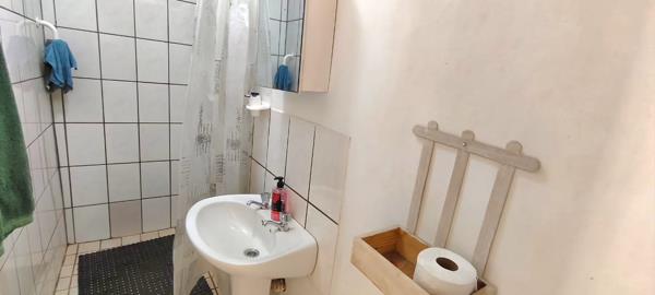 The kitchen has a gas stove, enough cupboard and counter space as well as a breakfast nook. And with the charming coal stove to warm it up in winter making it the best space to catch up with family members at the end of a cold winters day. The living room and dining room flows into one and offers an inside braai and nice fixed wooden cupboards. This is a very nice space to have braais in the winter with extended family and friends. There is also a one bedroom flat with an open plan kitchen and living room and a small bathroom. The bedroom has enough space for a double bed and also has build - in cupboard and a ceiling fan. This can be an rental opportunity or it can work perfect for a larger family.